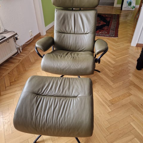 Denna fåtölj är en Stressless Metro, tillverkad av det norska företaget Ekornes.