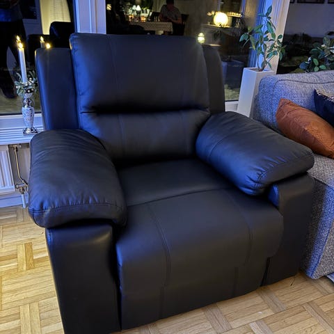 Säljer en Blimo Blidö – en mycket bekväm eldriven recliner/lyftfåtölj i svart konstskinn. Perfekt för dig som vill kunna justera sitt- och viloläge smidigt, och som uppskattar uppresningshjälp (liftfunktion).