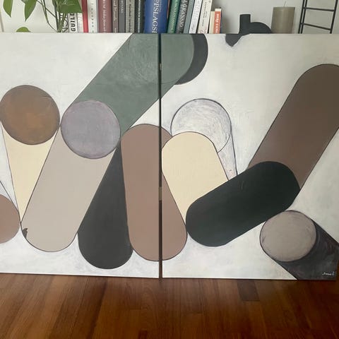Abstrakt målningar tavlor brun svart vit 60x60