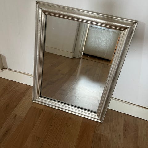 Spegel i gammal stil. Silverfärgad. Hämtas omgående