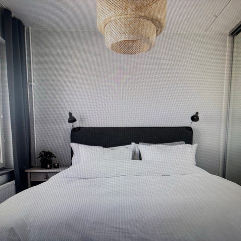 Synligt använd men i gott skick. En av sängribborna (längst ner på högra sidan på sista bilden) har en mindre skada och är tejpad. Ribban har flyttats till nedersta positionen och påverkar inte komfort eller funktion. Har använts så utan problem.