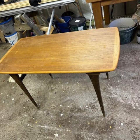 Originalprodukt från Kågens industrier AB i Tranås. Bord i massiv ek. Fint skick, två fläckar på ovansidan av möbeln annars inga skador alls. Originaletikett finns kvar.