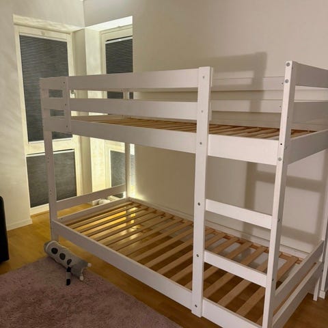 Våningssäng säljes. Hemmabygge på IKEA sängen KURA. Madrass medföljer ej. Nedmonterad & redo att hämtas.