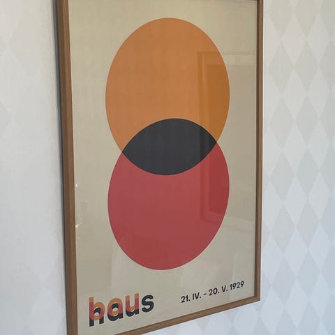 Fin poster med blått abstrakt blommönster mot vit bakgrund i enkel träram. Passar bra som väggkonst i vardagsrum, sovrum eller hall. designer trendiga Hanna KL. Upphämtning i Mölndal.
