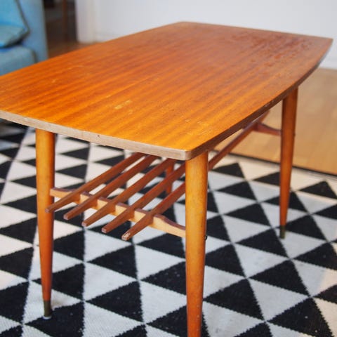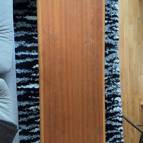 1 retro soffbord i teak och kakel tillverkat av Bröderna Miller i Bankeryd (grundat 1903 och som fortfarande drivs som familjeföretag i 5e generationen) på ca 1950-talet. Fin oval form med en praktisk tidningshylla undertill. Fint skick överlag men spår av användning finns. Kaklet har en spricka/repa som syns vid noggrann inspektion. Ca 148*55 cm, höjd ca 55 cm. Finns i Sätila, Marks Kommun men kan även levereras till Göteborg, Stockholm, Malmö med omnejd mot ersättning.