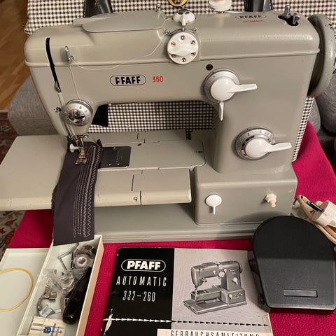Fin pfaff symaskin, välanvänd men mycket kvar att ge. Alla tillbehör på bilden ingår.