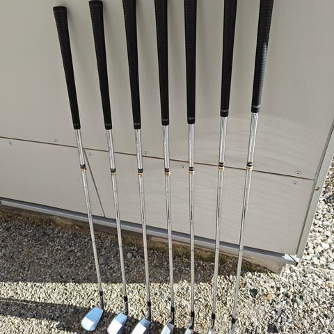 Golfklubbor järnset med sex järnklubbor. Klubborna har stålskaft (regular) och standardgrepp.