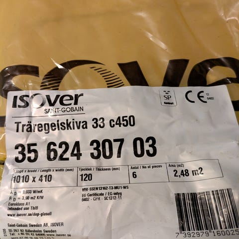 Isover Träregelskiva 37 6600 isolerskiva glasull