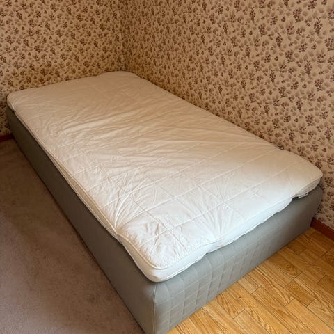 Säljer en 1 år gammal resårmadrass och bäddmadrass från en kontinentalsäng.