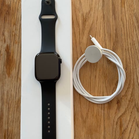 Svart Apple Watch använd fåtal gånger , en liten reva på skärmen