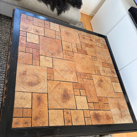 Massivt stenbord. Bordsskivan går att lyfta av.