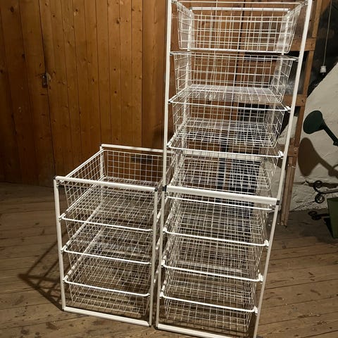 Gråa trådbackar i fint skick från Ikea. Två stommar med 8 korgar totalt