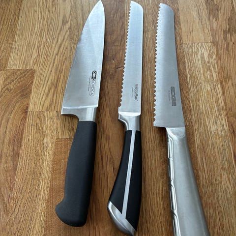 Set med 6st köksknivar. 5st från fiskars och en Leif mannerström. Levereras i hållare/förpackning som håller knivarna på plats när de inte används.