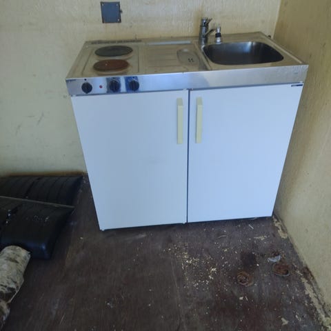 Minikök - Kylskåp, diskbänk, 2 st kokplattor. Bredd 120 cm, Höjd 90 cm, Djup 60 cm.