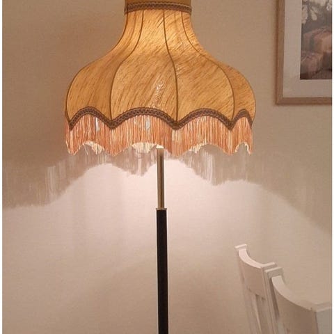 Taklampa med fransar. Diameter 50 cm, höjd ca 30 utan fransarna.
