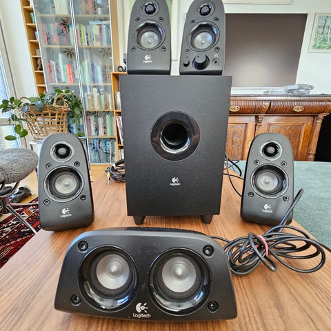 Typ: 2.1-kanaligt högtalarsystem (två satellithögtalare och en subwoofer).