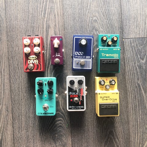 MXR micro amp, Ernie Ball VP JR och Dunlop Crybaby