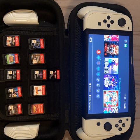 Nintendo Switch Lite i gul färg med spel, fodral och lddkbel