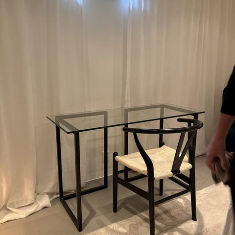 Skrivbord med glasskiva från IKEA. Sparsamt använt utan några större skador.