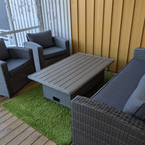 Utemöbelgrupp soffa fåtöljer bord konstrotting beige