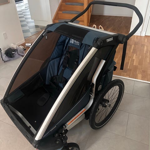 Thule cykelvagn Chariot Lite1 i mycket fint skick säljes. Har förvarats inomhus, sparsamt använd, endast mindre synliga skador. pga. användning. Fäste för cykel samt tillbehör enligt bild ingår.