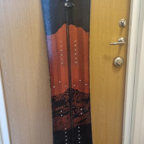 Brädan har två lagningar í svart enligt bild samt några ytliga repor som inte påverkar funktionen, kanterna är i mycket fint skick.