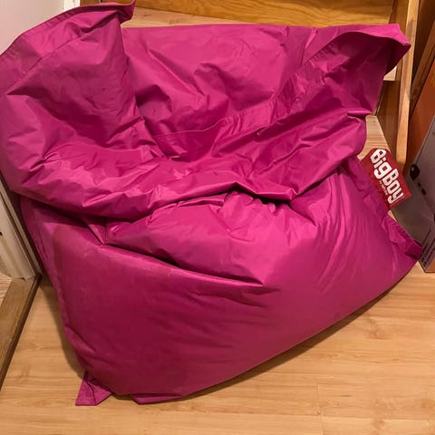 Fatboy sittsäck i större modell. Sittsäckarna syns i flera färger, bland annat lila, rosa och grön. Passar som mjuk sittmöbel i vardagsrum, barnrum eller lekrum och kan användas för avslappnad sitt- eller liggposition. Yttermaterialet är slätt och torkas av vid behov.