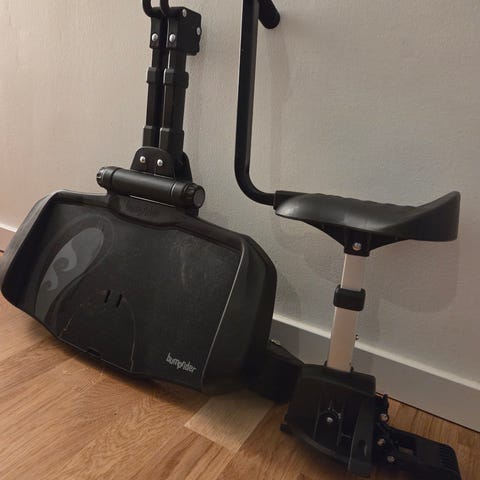 Ståbräda med sits från Bumprider. Använd ett fåtal gånger. Sitsen är ställbar i önskad höjd samt avtagbar. Universalfästen för att passa alla barnvagnar.