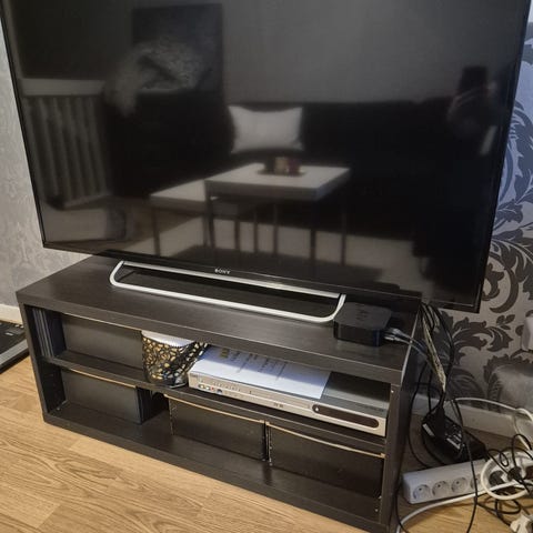 Mått svart tv bänk ca 1.07 m djup ca 40 cm höjden ca 50 cm.