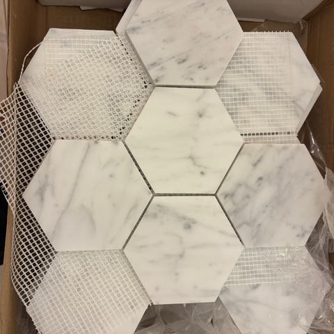 Jag har 6 plattor över från min badrumsrenovering. Täcker ungefär en halv kvadrat.