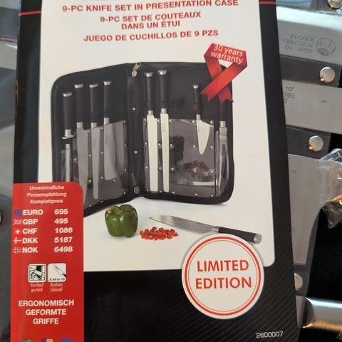 Set med grönsaksskärare och rivjärn. Innehåller olika insatser för att skära och riva grönsaker på olika sätt, samt en behållare för uppsamling.