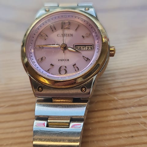 Citizen Automatic damklocka i använt skick. Klockan har en vit armband. Boetten är tillverkad i rostfritt stål och är vattenresistent. Urtavlan har en datumvisning.