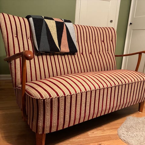 Det finns även ett gult sammetsöverdrag till soffan, se bild 2.