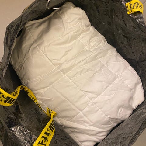 Jysk tyngdtäcke i storlek 200x150 cm. Täcket är grått och levereras i bärväska med dragkedja och handtag för enkel förvaring och transport. Tyngdtäcket har kviltad konstruktion som hjälper till att fördela vikten jämnt över hela täcket. Passar för användning i säng eller soffa som ett extra täcke vid vila och sömn.