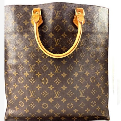 Louis Vuitton väska i läder med klassiskt brunt monogramtryck. Väskan har två axelremmar i läder och öppet huvudfack. Passar för vardagsbruk och som större handväska eller shopper. Materialet är präglat läder med kontrasterande sömmar och metallbeslag i guldfärg.