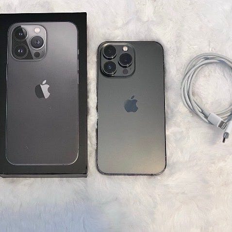 Apple iPhone 13 Pro mobiltelefon med 256 GB intern lagring. Modellen har trippelkamera på baksidan och en stor pekskärm på framsidan. Färgtonen är blå. Lämplig för appar, surf, foto, video och lagring av filer tack vare den större lagringskapaciteten på 256 GB.