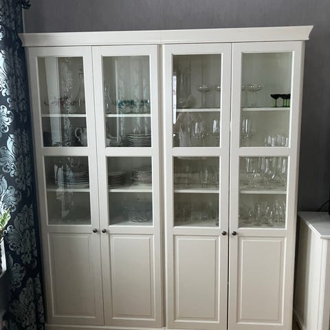 Säljer nu mina två Havsta vitrinskåp från IKEA https://www.ikea.com/se/sv/p/havsta-vitrinskap-med-sockel-grabeige-klarglas-s49534652/ (utan sockel)