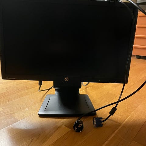 HP bildskärm med skärmstorlek på 23 tum i svart utförande. Passar för anslutning till stationär dator eller bärbar dator via kompatibla bildskärmsportar (t.ex. HDMI, DisplayPort eller liknande beroende på modell). Skärmen är monterad på en stabil fot och är lämplig för kontorsarbete, studier eller allmänt hemmabruk där en extern monitor önskas.