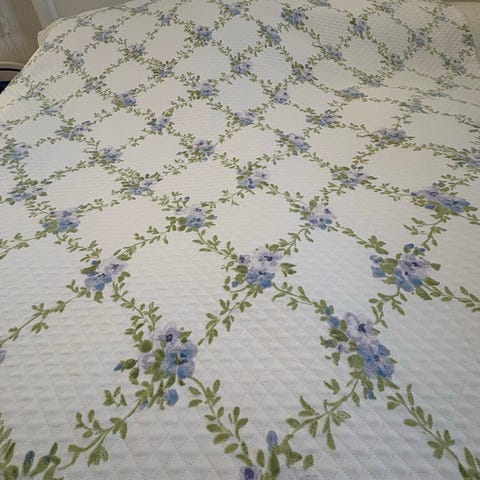 Överkast i ljusrosa färg. Quiltad struktur med horisontella rynkade volangränder. Passar som överkast till säng eller som extra filt i sovrum eller vardagsrum. Material enligt märkning på etikett (Oeko-Tex Standard 100). Storlek: 250 x 140 cm, passar en enkelsäng. Överkastet är nytvättat.
