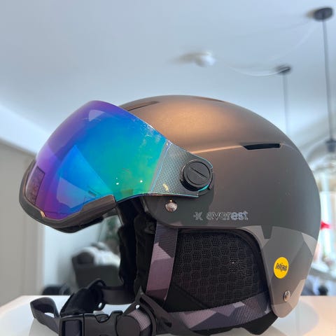 Vit Everest slalomhjälm med integrerat visir i storlek S/M, 54/57