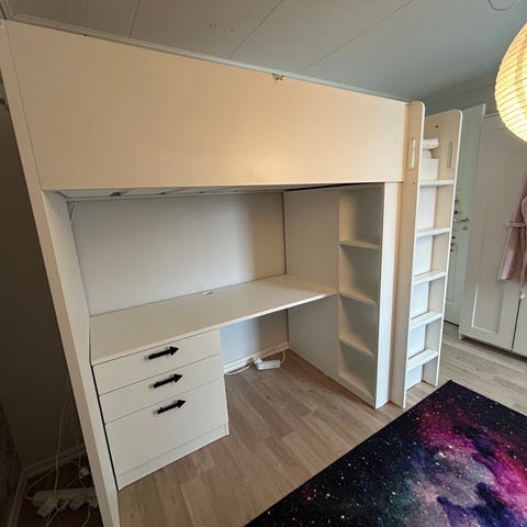 IKEA loftsäng vit med skrivbord och förvaring