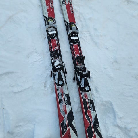 TecnoPro alpinskidor, längd 120 cm. Mått: 105-67-93 mm, radie 8,6 m. Lätt att justera bindningar verktygslöst för olika pjäxor.