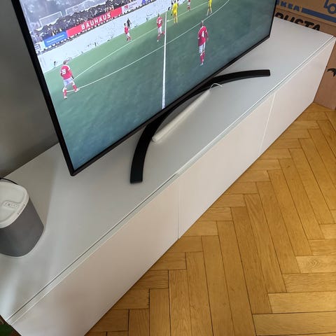Säljer en superfin tv-bänk BESTÅ från IKEA i superfint skick - haft den i några månader men ska flytta och kan tyvärr inte ta med den!