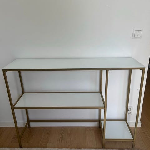 Mångsidig möbel från Skånska Möbelhuset i mässing med härdat glas i tre plan. Bordet är välarbetat med nedsänkta glasskivor i metallramen för att ge ett solit intryck. Använd bordet som sängbord, sidobord eller lampbord.