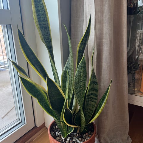 Svärmorstunga som krukväxt i lerkruka. Växten har upprätta, gröna blad med mönstrade tvärränder. Passar som inomhusväxt i fönster eller ljusa rum. Levereras i kruka som på bilderna.