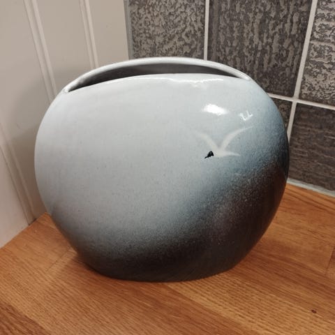 Nittsjö Blå keramik-kanna. Dekor med guldfärgade detaljer. Ca 20 cm hög, 47 cm i omkrets, vikt 1,2 kg