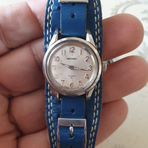 Seiko herrklocka rektangulär guldfärgad med svart läderband