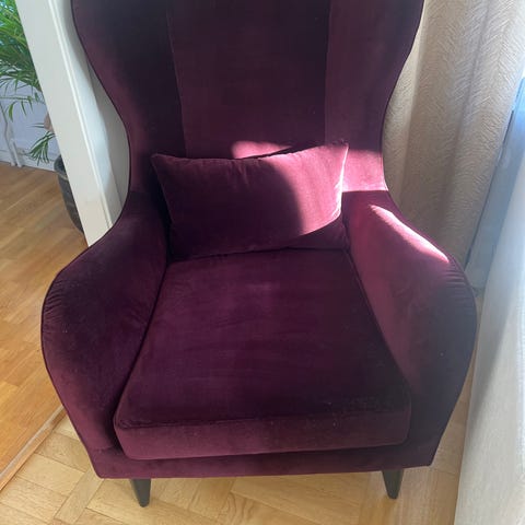 Fint Strandmon fåtölj från IKEA mörk grön sammet i bra skick som ny sparsamt använt.