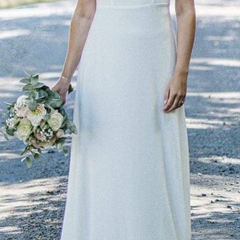 Klänning är lite längre bak. Så får en liten liten släp känsla. Klänningen är skräddarsydd och gammal vet ej årtal .