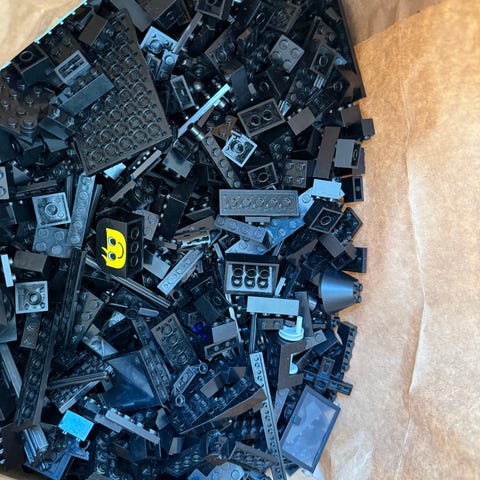 1 kilo. Lego lösviktsklossar i olika nyanser av grått. Blandning av plattor, balkar, tekniska delar och mindre bitar. Passar för eget byggande, reservdelar eller komplettering av befintliga Lego-samlingar.